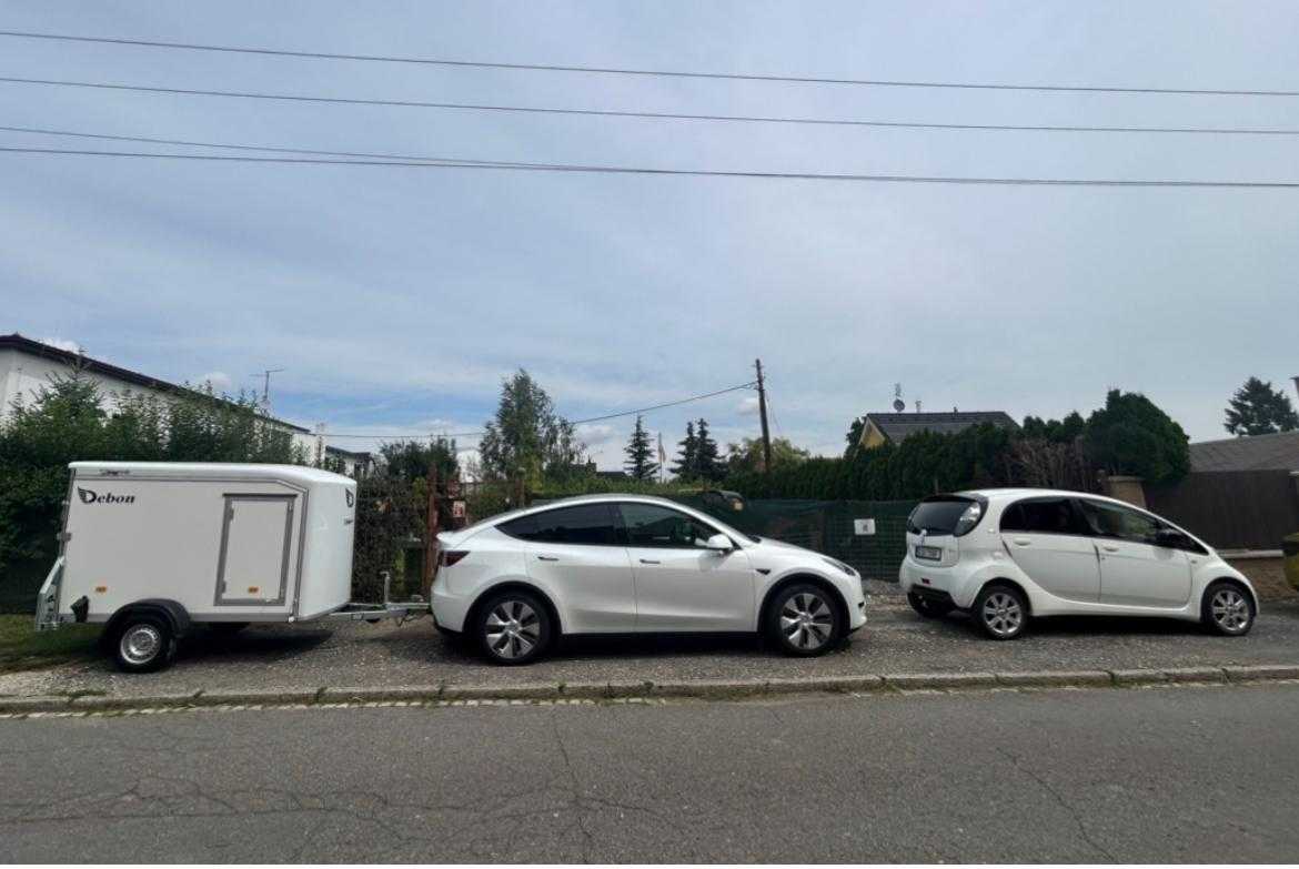 Tady je potřeba zmínit, že do TMY (Tesla Model Y) jsem přecházel po 20 letech strávených v dodávkách (Peugeot Expert následně Ford Transit Custom), takže to pro mě byla změna zásadní. Velká motivace k tomuto kroku byla moje ekologická stopa. Uvědomil jsem si, že v dodávkách jsem jezdil v podstatě jako technickohospodářský pracovník většinou sám a po prázdnu. Občas se mnou jel někdo další a občas jsem využil mnohdy i plnou kapacitu vozidla obvykle v situacích, kdy bylo potřeba na stavbu dostat větší množství materiálu, než dokázali pobrat kolegové do velké dodávky. Tahle situace stále trvá, takže jsem se rozhodl většinovou část provozu obstarat právě TMY a pro tu občasnou jsem pořídil vlek, který můžu táhnout jak za TMY, tak i kolegové za dodávkou. Za TMY se dá zapojit vlek o celkové hmotnosti do 1,6 t, takže nás využívání menšího auta nijak neomezilo.